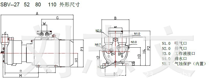 产品介绍;本产品叶轮采用青铜材料制成,比其他真空泵强度要高。主要用于抽吸不含固体颗粒,不容于水,并且无腐蚀作用的气体。它通过水环循的作用使被抽气的密封系统产生负压。从而起到真空过滤,真空干燥,真空脱水,等功能。以下是;型号SBV-27 功率1.1kw 最低吸入绝对压力 3.3kpa 最大吸气量27m3/H 工作液量0.2m3/H 转速2900r/min 噪音62db(A)