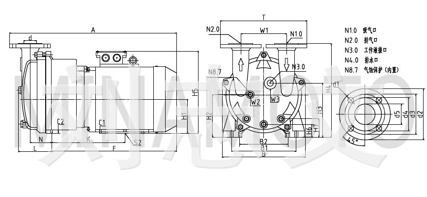 本泵采用了青铜材料的叶轮,比别的真空泵强度要高,如用于抽吸带有腐蚀作用的气体,蒸气或者液体时,必须使用相应的耐腐材料,可在订货时说明。