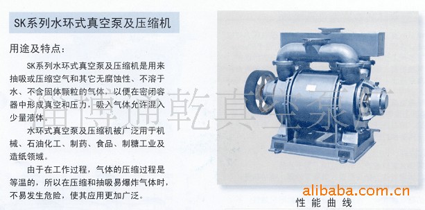 水环式真空泵用于抽吸不含固体颗粒,不容于水、无腐蚀性的气体,以便在密闭的容器形成真空和压力。由于在压缩中气体是在等温状态下压缩,因此可以抽送易燃易爆气体。广泛用于化工、造纸、石化、轻工、制药、食品、洗煤、选矿、化肥等行业。不锈钢材质更增加了泵的耐腐蚀性。
