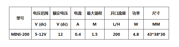 12V, 功率4.8W,出水口径8mm,扬程可达1.5M,外壳采购优质工程塑料制成,经久耐用,