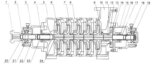 2、本型泵主要由进水段、中段、导叶、叶轮、出水段及轴承体部件、密封部件等组成,其结构设计合理;