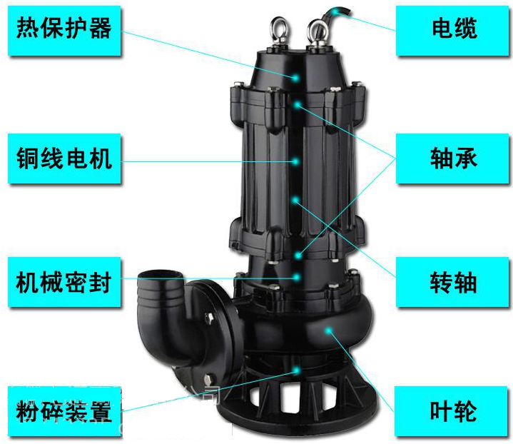 7.水泵应垂直潜入水中,不允许横放,不能陷入污泥中,水泵移动时,必须切断电源。