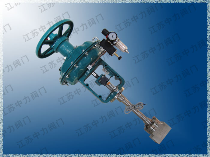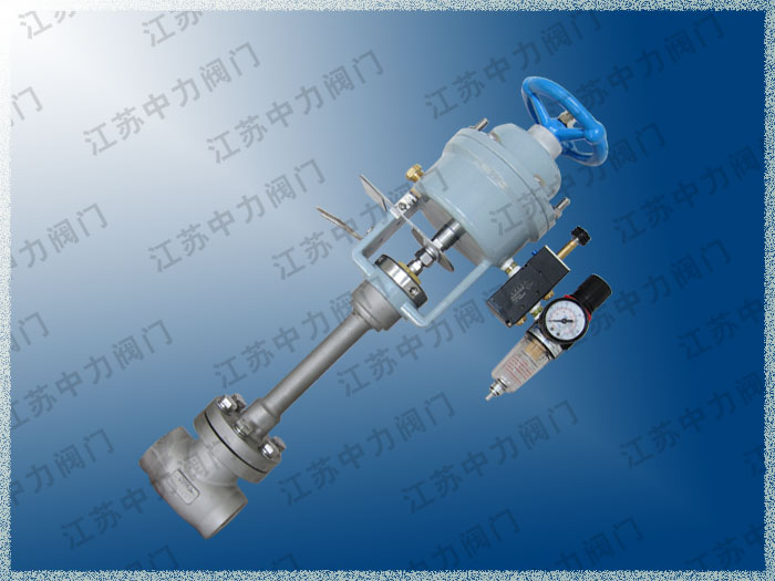 该阀与管路连接分为焊接式与法兰式,在正常情况下,利用活塞上部弹簧的压力,推动活塞向下运动,继而带动活塞杆和阀杆向下,使阀顶密封面和阀座密封面紧密贴合,实现阀门的关闭;当向气缸充压后,活塞压缩弹簧向上运动,带动活塞杆和阀杆向上,将阀顶抬高,阀门打开。当阀门处于开启位置,正常工作时,若环境温度升高至70±5℃时,安装在气缸处的易熔塞熔化,气缸泄压,弹簧推动活塞向下运动,带动阀杆和阀顶向下,迅速关闭阀门,阻止介质继续流动,防止危险。