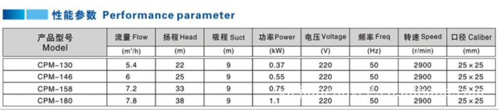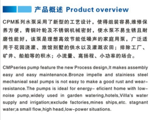 | 品牌:协佳泵业 | 型号:CPM型离心泵 | 材质:铸铁 |