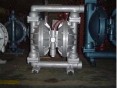 QBY-25型不锈钢316L四氟气动隔膜泵是目前国内最新颖的一种采用压缩空气为动力源,通过气阀往复运动分配空气,带动隔膜挤压输送介质的容积式泵,该泵集杂质泵、自吸泵、泥浆泵、屏蔽泵、潜水泵等输送机械的优点。聚丙烯塑料塑料气动隔膜泵是一种新型输送机械,是目前国内最新颖的一种泵类。采用压缩空气为动力源,对于各种腐蚀性液体,带颗粒的液体,高粘度、易挥发、易燃、剧毒的液体,均能予以抽光吸尽。其性能参数与联邦德国的WLLDENPVMPS、美国的MARIOWPUMPS相近。 有4种规格直径:∮10mm(3/8〃)、∮15mm(1/2〃)、∮25 mm(1〃)、∮40mm(11/2〃)。隔膜片根据不同液体介质分别采用丁晴橡胶、氯丁橡胶、聚四氟乙烯、等满足不同用户的需要。