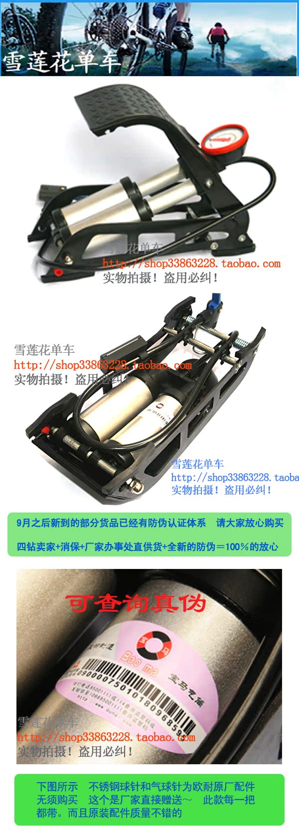 双管打气筒(带包装)钢制框架,铝合金的管子正品带防伪