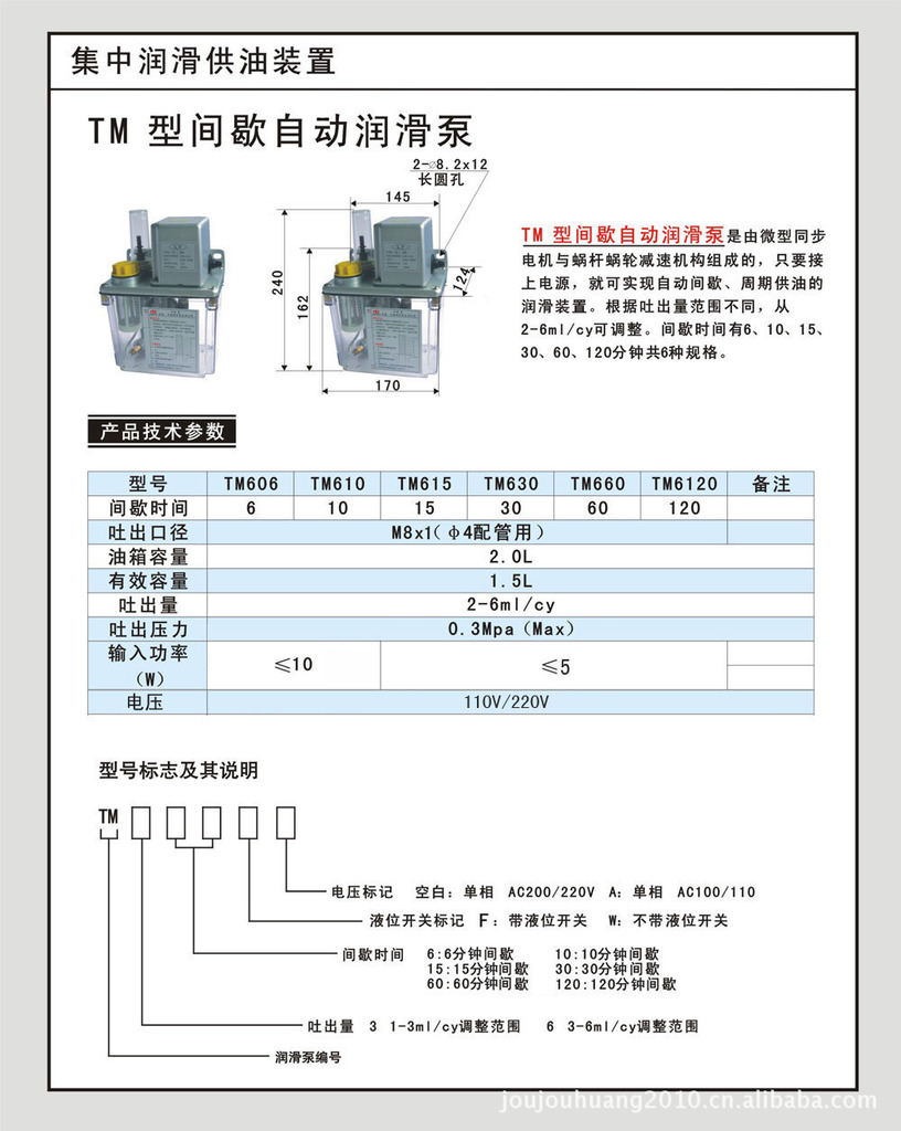 自动间歇润滑泵是由微型同步电机与蜗轮减速机构组成的只要接上电源就可实现自动间歇、注油的润滑装置。