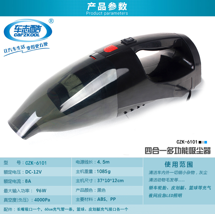 | 加工定制:是 | 类型:点烟式车用吸尘器 | 品牌:车志酷 |