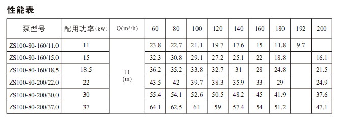 | ZS100-80-160/11.0 | 15 | 160 | 11 | 2950 |
