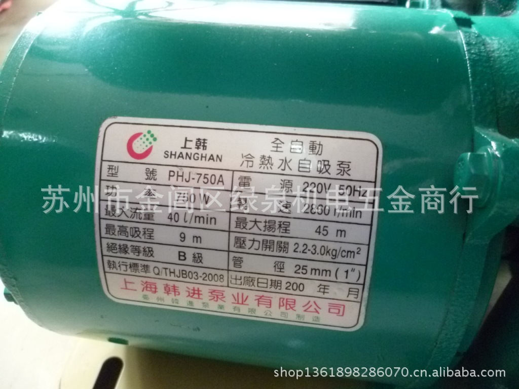 公司(店面名:上海韩进水泵苏州总经销)位于(苏州市东中市281号,苏州市虎丘机电五金城主干道拐角处C3-103)(汉诺威对面)我公司成立于2004年6月14号,是一家经营国内外中高档水泵的企业。2006年4月1 5日成为上海韩进泵业有限公司苏州地区的总代理商,另外也是国内代理的知名品牌水泵有:日本日井 南方水泵、 上海人民水泵、上海青蛙水泵、上海凯源水泵、上海韩进水泵、德国威乐、台湾木川、台湾亨龙、格轮不锈钢泵,····等 漩涡气泵, 喷泉泵, 真空泵 ,不锈钢泵, 喷头 ,潜水泵各个系列 ,电动试压泵等。上海人民水泵厂各种 规格水泵管道增压泵、消防泵、单、三相电机、鼓风机离心风机、振动机、夏朗抽油泵。排风扇、工业风扇、 化工泵、机床油泵、深井泵、增氧机喷泉泵系列、喷头等。 公司以 诚信广交各位新老客户及各位水泵业的同僚,愿我门共同的努力能够为大家带来 共同的价值
