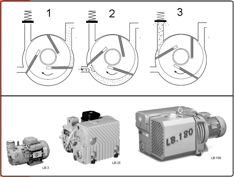 Moreover, a sealing device prevents the oil from being sucked back should the pump stops under vacuum.