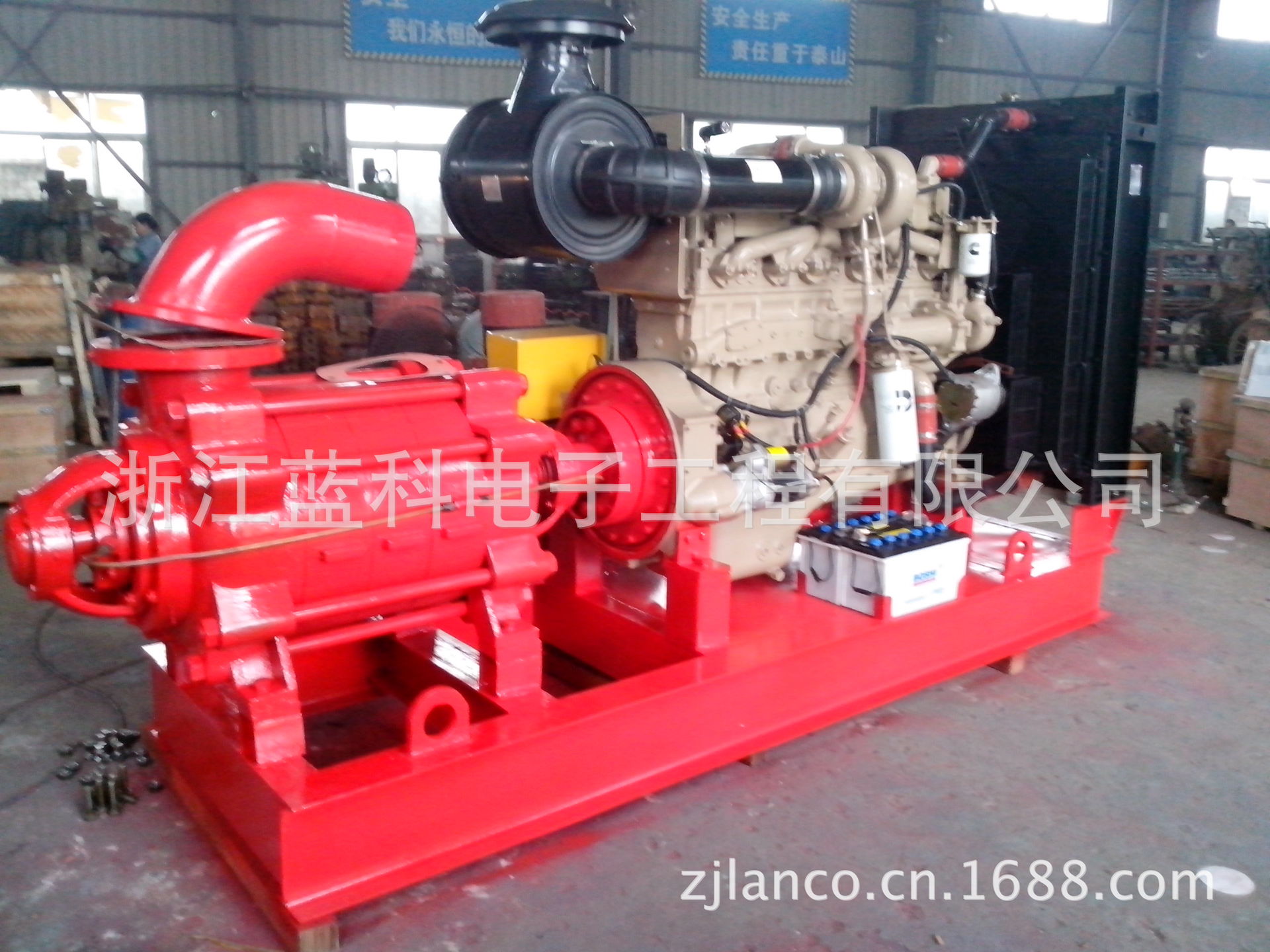 流,尤其是在没有电源或电源(市电)不正常等意外情况下的消防给水。机组中所配的水泵为我司生产的卧式单级、多级消防专用泵,所配的柴油机均为国内内燃机行业骨干企业生产的495、4135、X6135、12V135等系列机型,根据用户需要亦可配置其它柴油机作为动力机。主要由柴油机、消防泵、联接装置、油箱、散热器、蓄电池组、智能型全自动控制屏等组成。