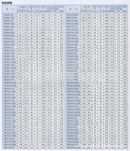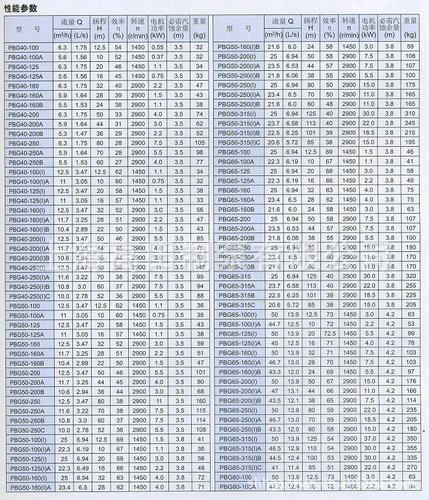 全系列共67个品种,184个规格,其性能范围:流量6.3-1080m3/h,扬程12.5-125m,配用电机功率0.37-160kW,转速1450r/min和2900r/min。