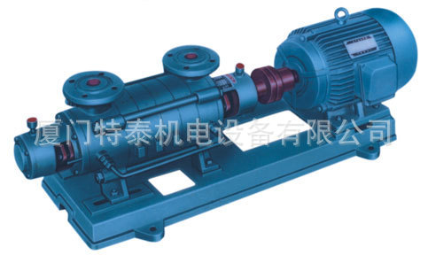 GC型水泵为多级分段式,1-1/2GC-4GC四个型号的进出口分别在进水段和出水段上,均垂直向上,其扬程可根据使用需要而增减水泵级数.水泵装配良好与否,对性能影响很大,尤其是各个叶轮的出口与导翼进口之相对位置,每吸叶轮的吐出口中心必须对准导翼的中心,其中稍有念头即将使用水泵的流量减少,扬程降低,效率差,帮在检修后装配时务必注意,若有偏差必须调整。 GC型海洋水泵的主要零件有轴、轴套、进水段、叶轮、导翼、密封环、中段、出水段、平衡环、平衡盘、尾盖。 进水段、中段、出水段及尾盖均为铸铁制成,共同形成泵的工作室。 叶轮为铸铁制成,内有叶片,液体沿轴向单侧进入,由于叶轮前后受压不等,必须存在轴向力,此轴向力由平衡盘来承担,叶轮制造时经静平衡试验。 轴为优质碳素钢制成,中间装有叶轮,用键、轴套和轴套螺母固定在轴上。轴的一端按装联轴器部件,与电机直接联接。从转动方向看时,泵轴为顺进针方向旋转。 密封环为铸铁制成,防止水泵中高压水漏回进水部分,分别固定在进水段与中段之中,为易损件,磨损后可用备件更换。 平衡环为铸铁制成,固定在出水段上,它与平衡盘共同组成平衡装置。 平衡盘为耐磨铸铁制成,装在轴上,位于出水段与尾盖之间,平衡轴向力。 轴套为铸铁制成,位于两填料室处,作固定叶轮和保护泵轴之用。为易损件,磨损后可用备件更换。 轴承是用单列向心球轴承,采用钙基黄油润滑。 填料密封由进水段和尾盖上的填料室,填料压盖,填料环及填料等组成,少量高压水流入填料室中起水封作用。填料的松紧程度必须适当,不可压的太紧,也不可太松,以液体能一滴一滴地渗出为准。如果填料太紧,轴套容易发热同时耗费功率。填料太松,由于液体流失要降低水泵效率。
