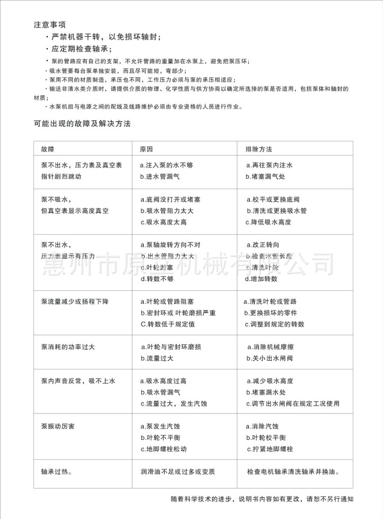 主要供吸送稀释的、清洁的、不腐蚀的清水及粘度5℃E以下、物理化学性质类似水不含固体颗粒或纤维的液体。