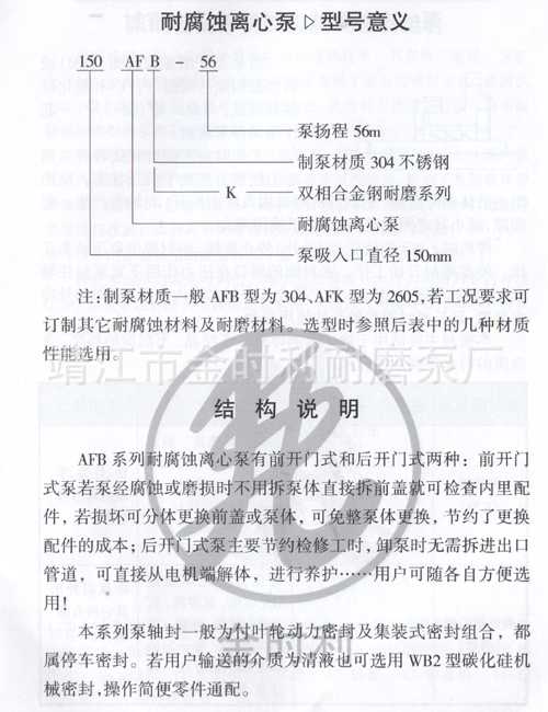 | 叶轮结构 | 来电垂询 | 适用范围 | 碱和无机盐、钢铁工业、制酸工业 | 产品别名 | IJ、HJ 浆泵、碱泵 |